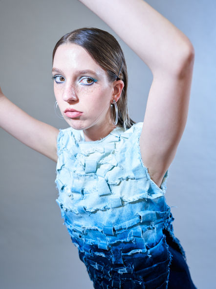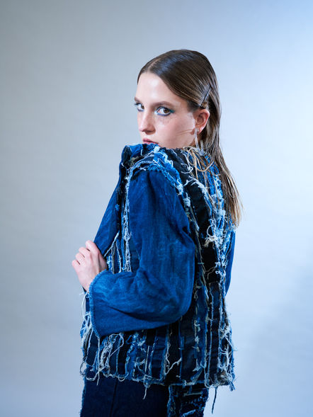 I use denim to combine with knitwear to get a contrasting feeling in my collection. Also, I will bleach the denim and knitwear in the part of the texture for looks more three-dimensional.